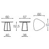 Tmavě šedý trojúhelníkový stůl 60x57 cm, bílá základna tvaru čtyřstěnu, výška 52,5 cm