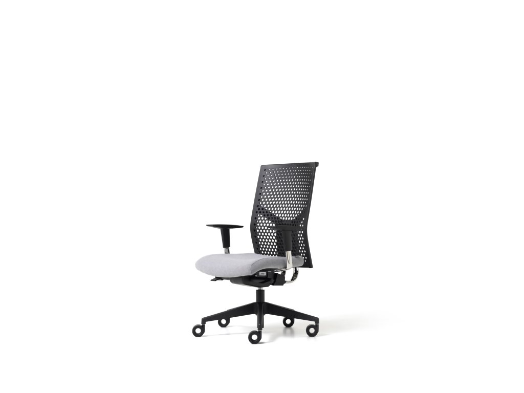TERMOFORMOVANÁ LÁTKA ZÁDA - tepelně tvarovaná látka tak, aby ve více namáhaných místech mělo opěradlo výšší tuhost a díky otvorům je opěradlo více odvětrávané, podnož i opěrka v ČERNÉM PROVEDENÍ. Jejich řešení a pevnost umožňuje těmto židlím dobře zapadnout do různých nastavení, přinášející dodatečný nádech moderní elegance. Výškově nastavitelný sedák s integrovanou bederní opěrkou. Celočalouněné sedadlo s elastickou polyuretanovou pěnou. Mechanismus zajišťuje regulaci výšky a sklon opěradla, uzamykatelný v pěti polohách s anti-šokovým mechanismem a nastavením tělesné hmotnosti. Možnost doplnit o područky, opěrku hlavy.