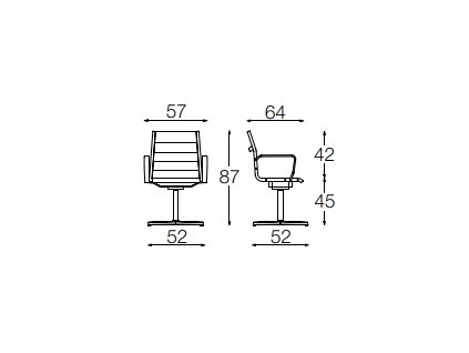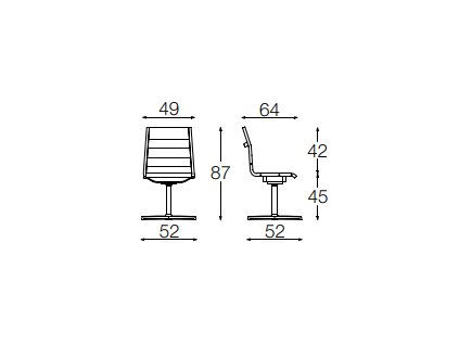 Manažerská křesla a židle pro návštěvy se středním nebo vysokým opěradlem, vše v černé, bílé nebo šedé síťovině. Taky k dispozici plně čalouněné. Chromovaný ocelový rám s područkami z leštěného hliníku a pětiosou základnou, samobrzdícími gumovými kolečky. Mechanismus naklápění, který umožňuje aretaci opěradla v různých polohách, nastavení tělesné hmotnosti, protišokový systém a plynový píst. Středně vysoká zadní část je volitelně dostupná pouze s plynovým pístem; nebo na chrom konzolovém rámu; nebo na čtyřhranném leštěném hliníkovém podstavci s otočným a vratným mechanismem. Uživatelský manuál, kde jsou informace k podnožím, sestavení a nastavení sedáků, najdete zde.