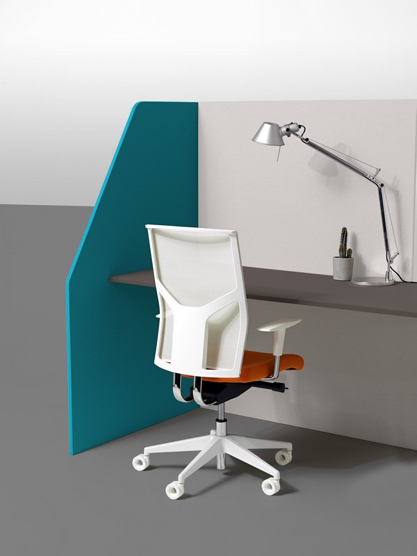Pracovní židle s možností výběru opěradel: černá nebo bílá síťovina; černý nebo bílý polypropylen; kompletně čalouněný tepelně tvarovanou tkaninou. Výškově nastavitelná výška s chromovanou pohyblivou integrovanou bederní opěrkou. Celočalouněné sedadlo s elastickou polyuretanovou pěnou. Jeho mechanismus zajišťuje regulaci plynovým pístem a sklon opěradla, uzamykatelný v pěti polohách s anti-šokovým mechanismem a nastavením tělesné hmotnosti. Základna z černého nebo bílého nylonu nebo leštěného hliníku. Tři typy područek: pevná; výškově nastavitelné (1d); výška a hloubka nastavitelná otáčením (3d). Volitelné funkce: opěrka hlavy, posuvný systém pro nastavení hloubky sedu, kolečka s otvory. Uživatelský manuál, kde jsou informace k podnožím, sestavení a nastavení sedáků, najdete zde.