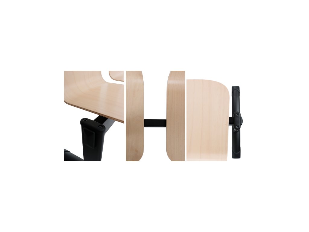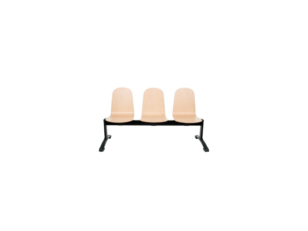 Lavička pro tři osoby. Černá ocelová kostra, sedátka z bukového dřeva v jedné z dostupných barev