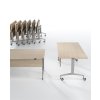 Stůl se skládací deskou na kolečkách, horizontálně stohovatelné. Stojan z pravoúhlé ocelové trubky 80x60 mm s patkou z tlakově litého hliníku. Gumové otočné kolo nezanechávající stopy s brzdou Ø 75 mm.